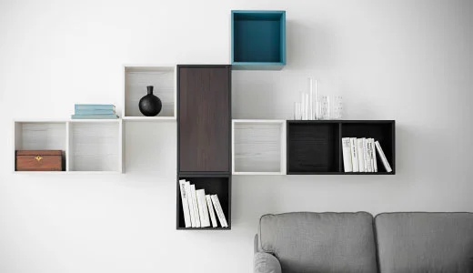 If you're after a stylish and modern looking wall-mounted shelving unit, this is a fantastic affordable system. Starting at £17 per cabinet (that's a single square shelf on the picture), and with a range of different colours available, you can create your own design by freely combining cabinets of different sizes, with or without doors and drawers.